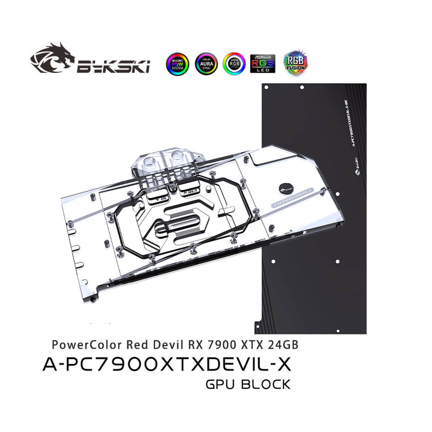Bykski PowerColor Red Devil RX 7900 XTX 24GB GPU waterblock incl. backplate