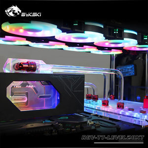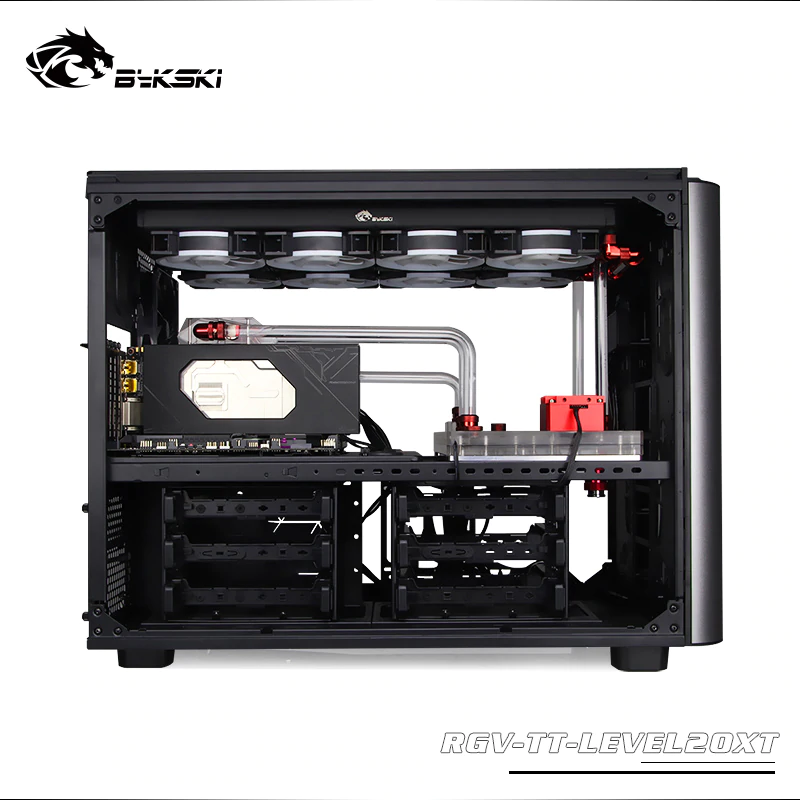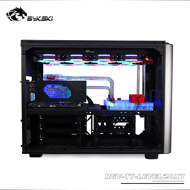 Unsere Bykski Distro Plate ist darauf ausgelegt schnell und einfach eine passende Hard Tube Wasserkühlung, mit einem aufgeräumten Design, in das Thermaltake Level 20 XT Gehäuse einzubauen.
