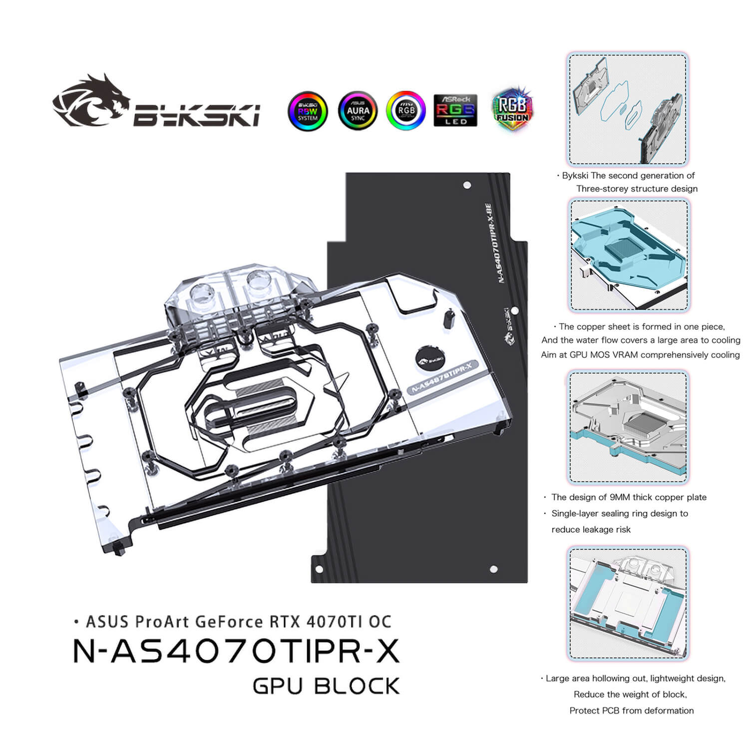 Bykski Asus ProArt GeForce RTX 4070TI OC GPU waterblock incl. backplate