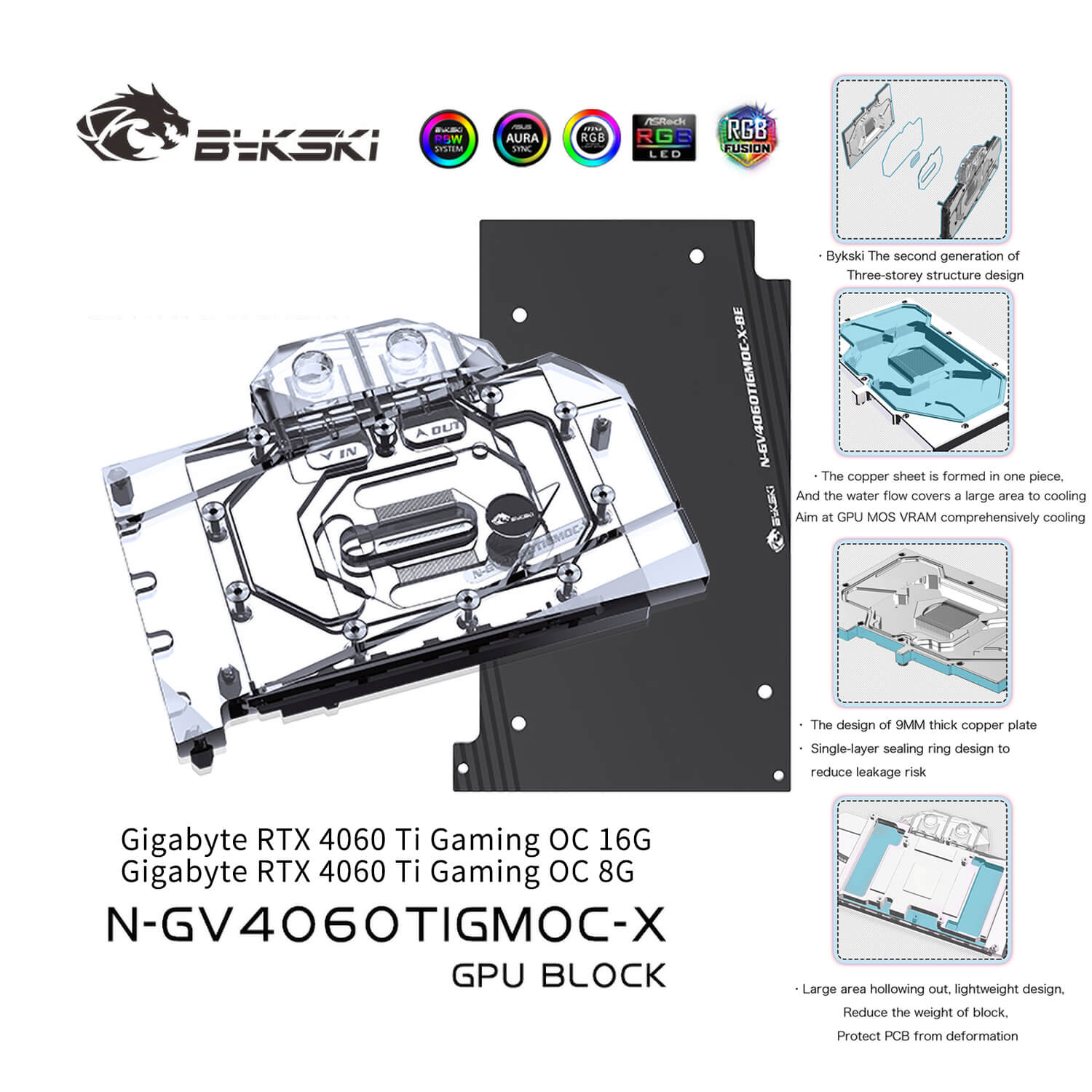 Bykski Gigabyte 4060TI GAMING OC 16G GPU waterblock incl. backplate