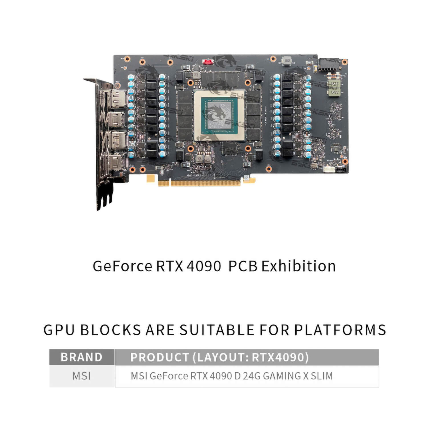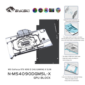Bykski MSI RTX4090 24G GAMING X SLIM refroidisseur GPU y compris plaque arrière